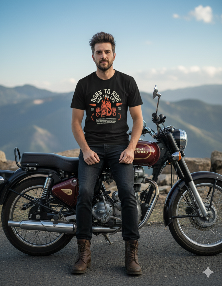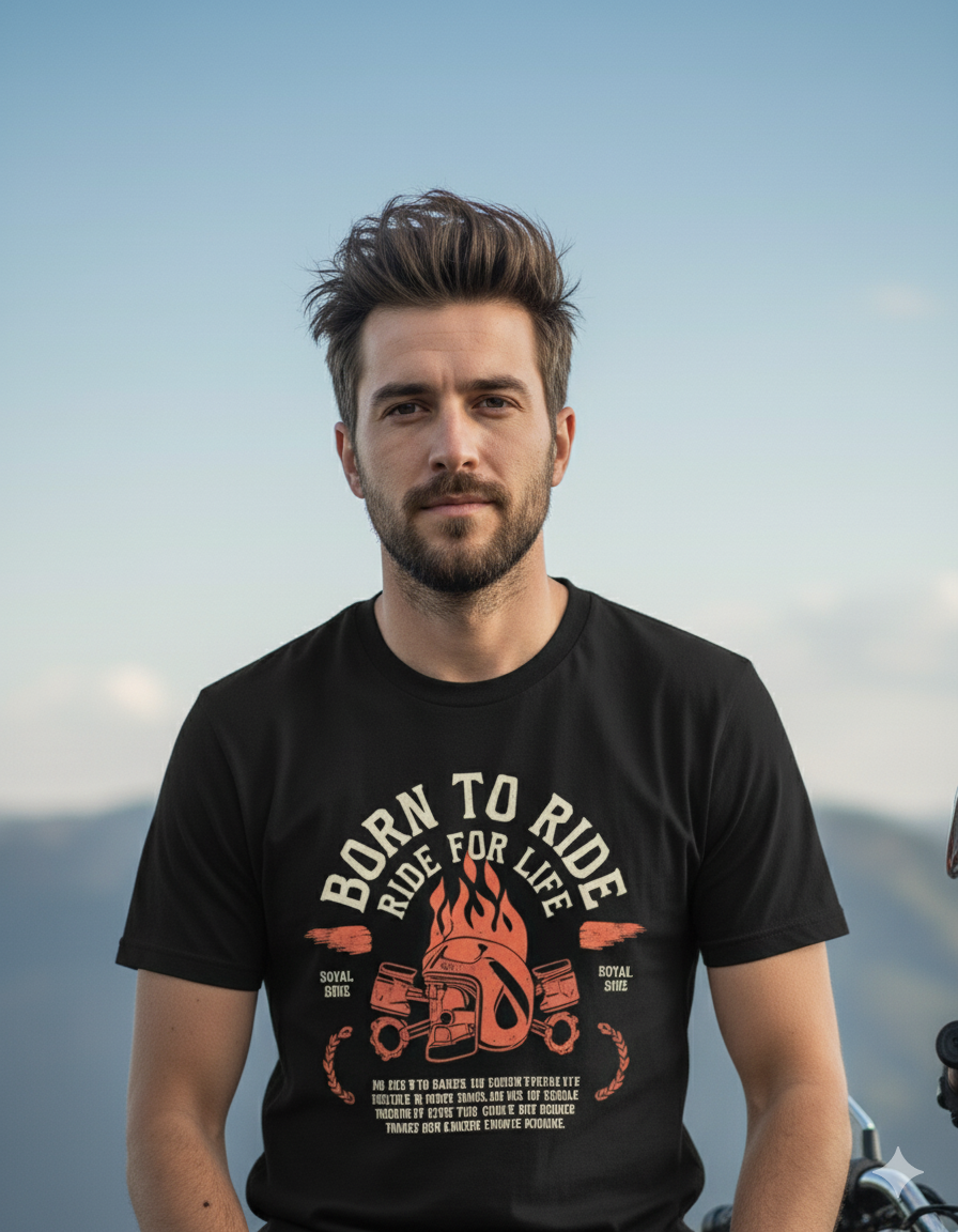 Feel the Road, Wear the Legacy. Your Journey, Your Story, Your “BORN TO RIDE” Tee.