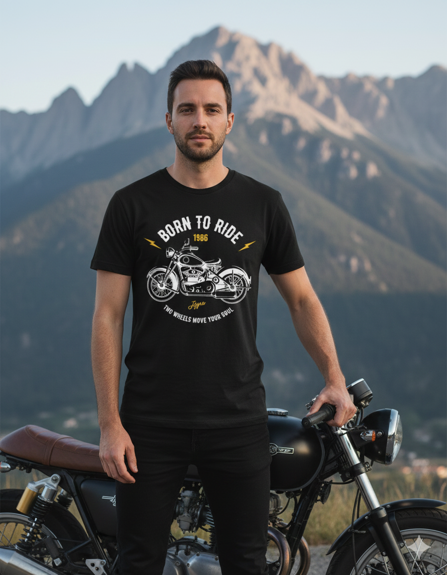 Feel the Road, Wear the Legacy. Your Journey, Your Story, Your “BORN TO RIDE” Tee.