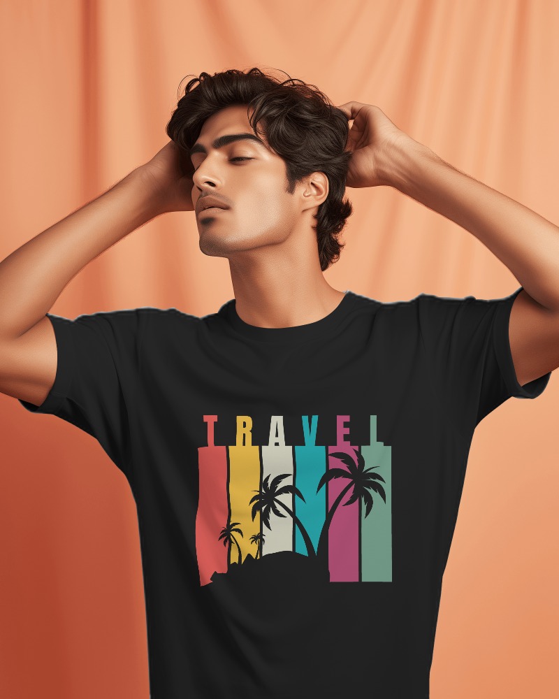 Made from ultra-soft, breathable cotton fabric, this tee ensures all-day comfort, whether you’re exploring new cities or lounging on the beach. Its classic crew neckline and relaxed fit offer versatility, effortlessly pairing with your favorite jeans or shorts for a laid-back yet polished look.